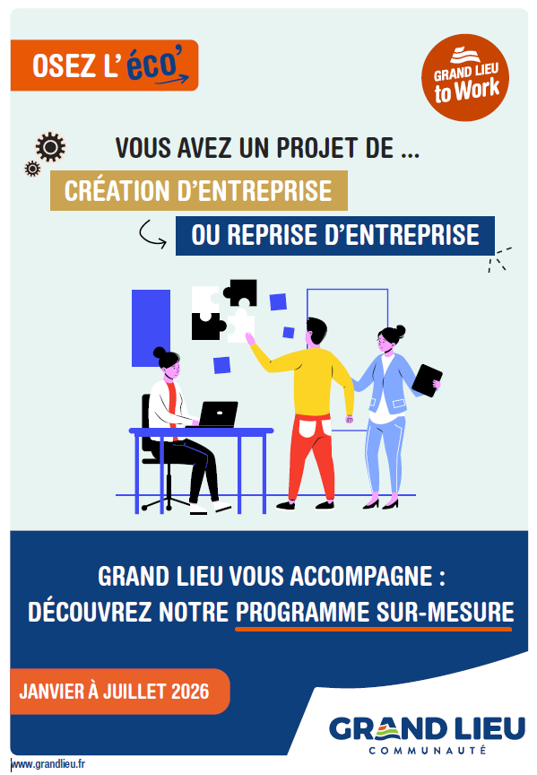 “Osez l’Éco” est un dispositif proposé par Grand Lieu Communauté pour accompagner gratuitement à la création-reprise d’entreprise les porteurs de projets du territoire. Sur-mesure, ce programme permet aux personnes souhaitant créer ou reprendre une entreprise et aussi aux jeunes entreprises, d’être accompagnées dans toutes les étapes de leur projet, de l’idée jusqu’au financement.