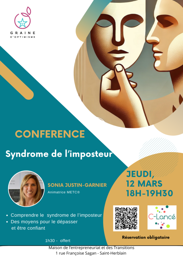 Venez afin de vous informer sur le syndrome de l’imposteur, grâce à cette conférence/atelier animée par Sonia Justin-Garnier, Animatrice et Conférencière en relation d’aide.